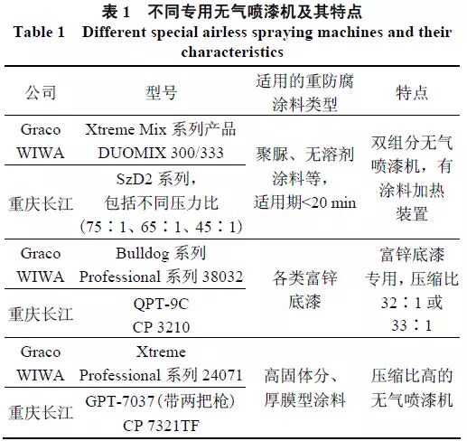 国外的GRACO、WIWA、WAGNER 公司,国内的长江、长平机械厂均研制、开发了各类无气喷漆机,以适应不同重防腐涂料的需要。各种专用无气喷漆